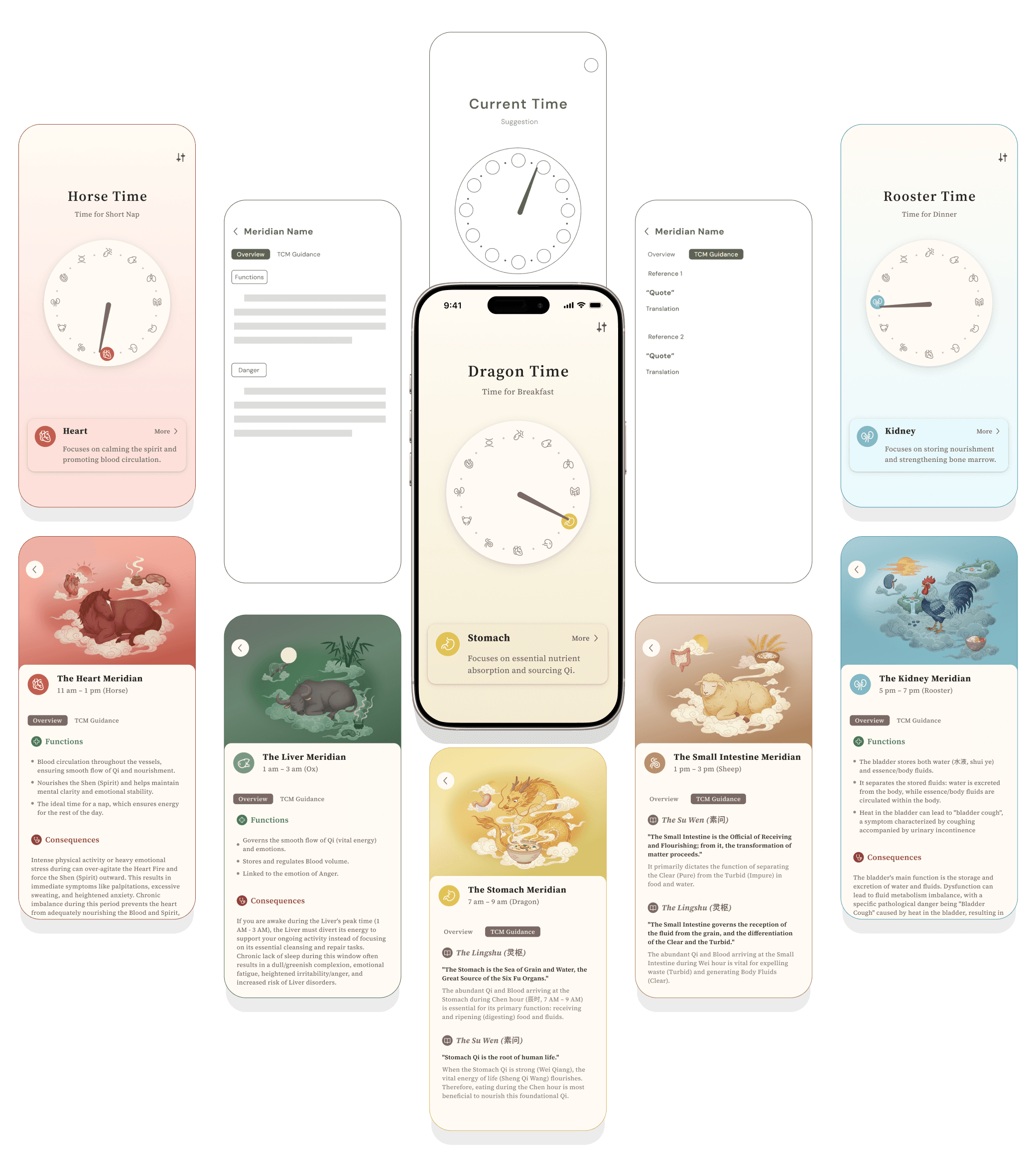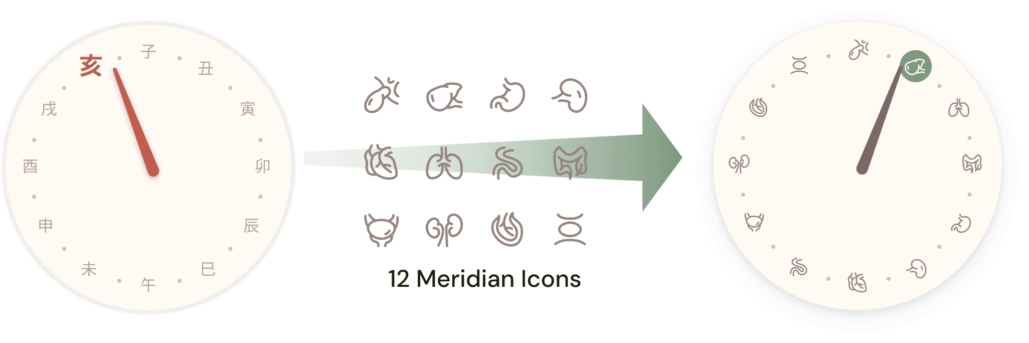 Converting meridians and time blocks into a unified icon system helps users quickly grasp their meaning and remember them effortlessly.