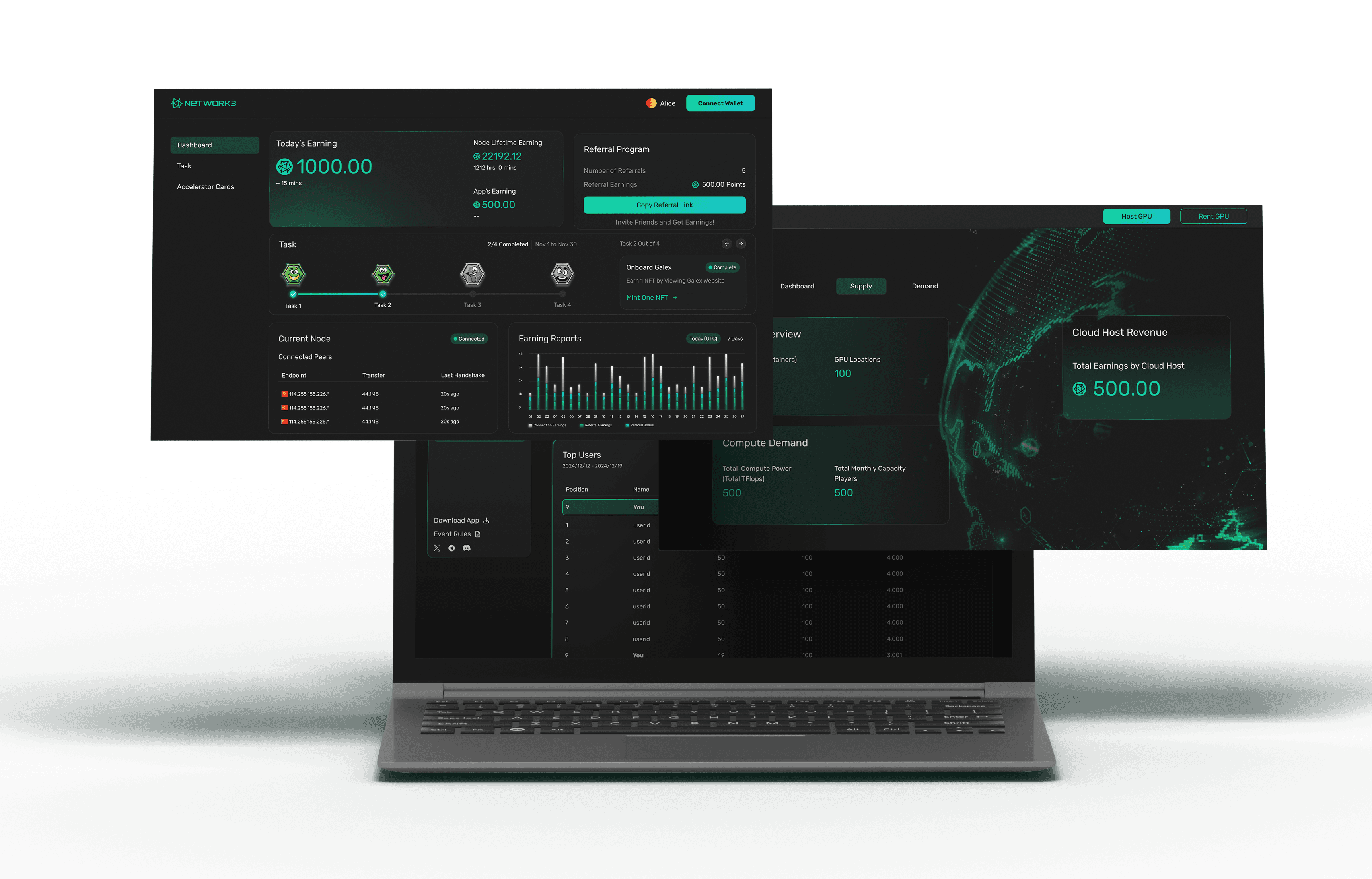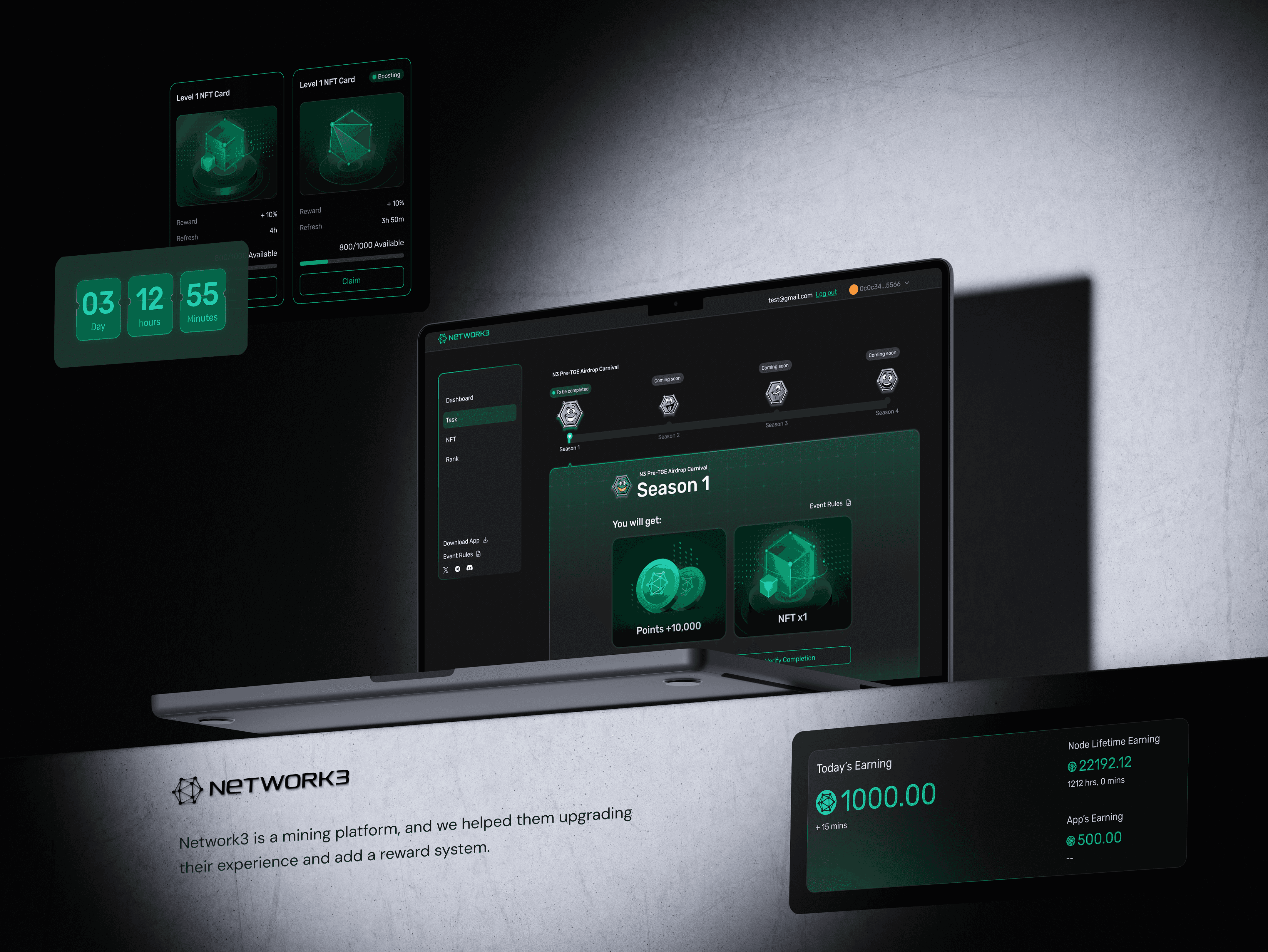 Network3 is a Web3 mining platform who provides specialized hardware that validate blockchain transactions and earn cryptos as rewards.