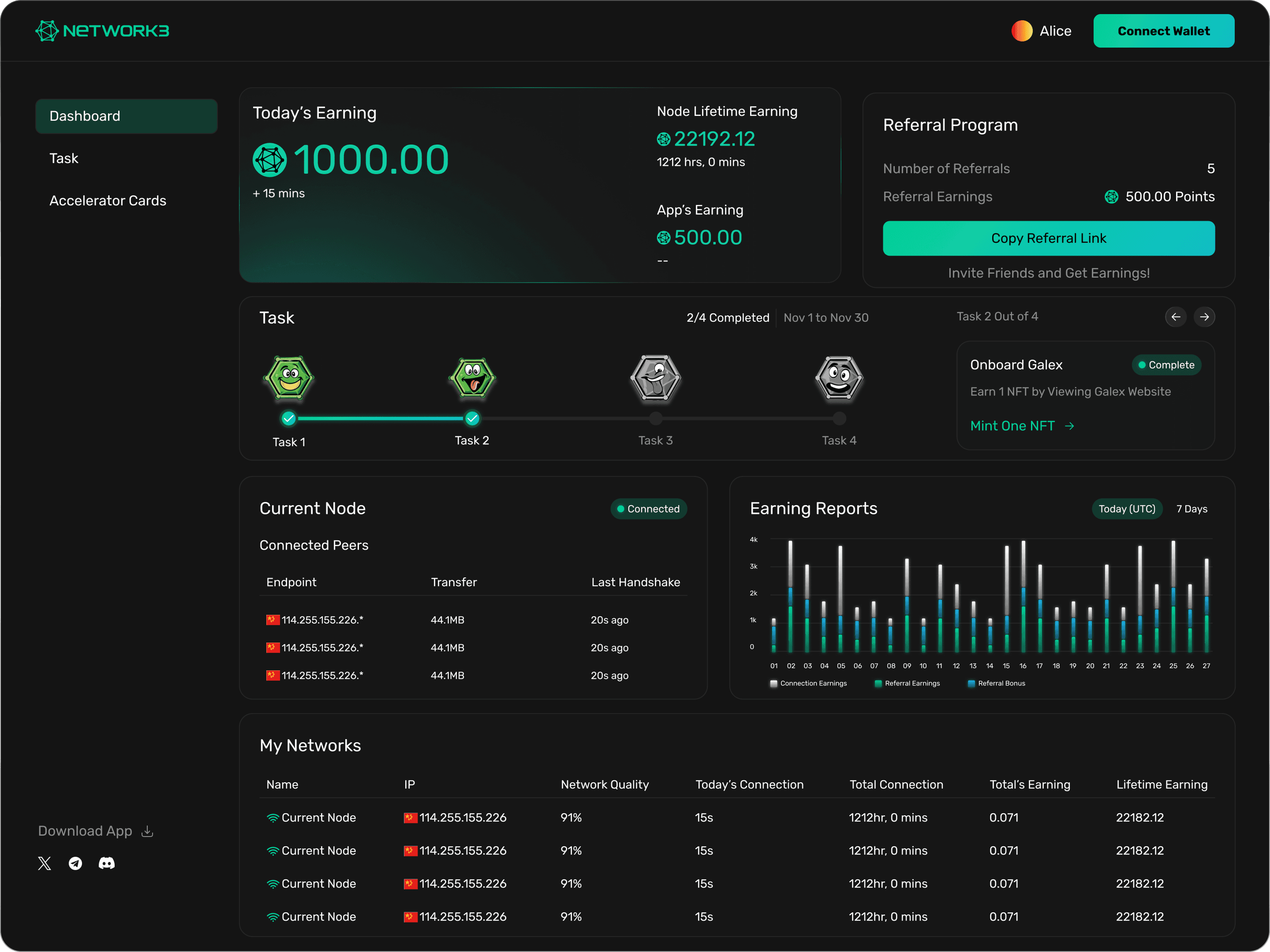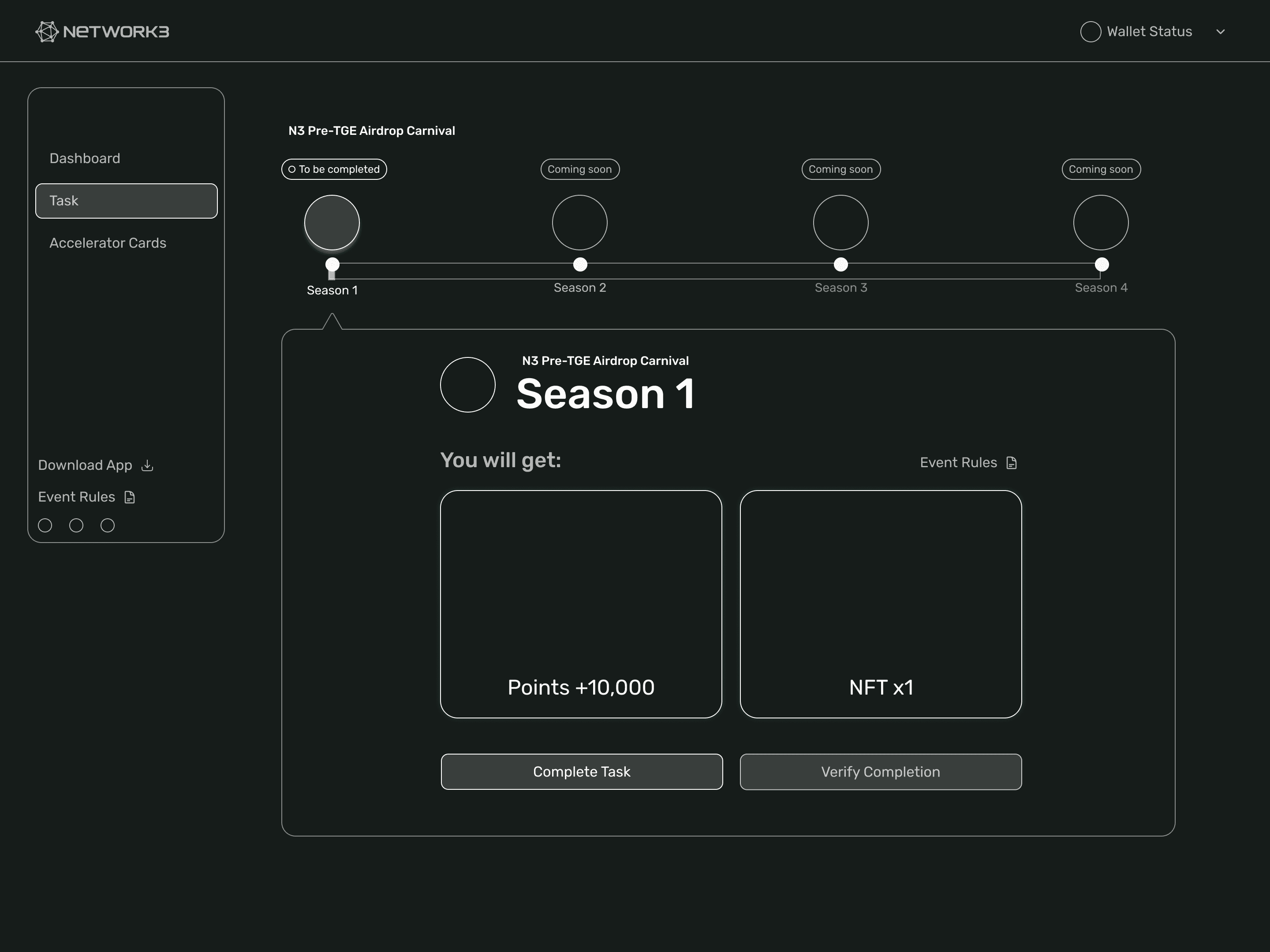 They wanted to bring users closer. Building on the upgraded dashboard, we created a reward system that let users earn NFTs through completing tasks.